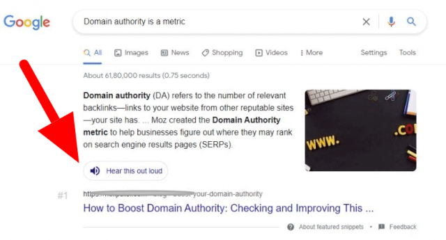 Google тестирует кнопку для озвучивания результатов в десктопной выдаче. Эксперимент заметил и поделился скриншотом зарубежный SEO-специалист: