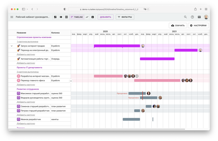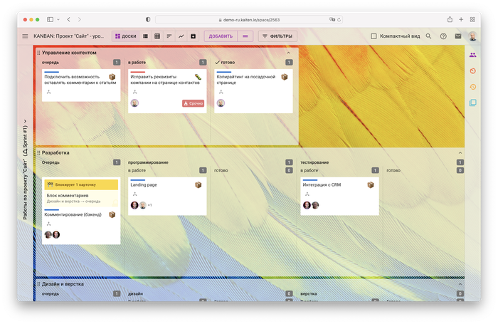 «Кайтен» — визуальная система управления рабочими процессами и командами. Бесплатный тариф содержит большинство функций, которые предлагают платные версии популярных аналогов.