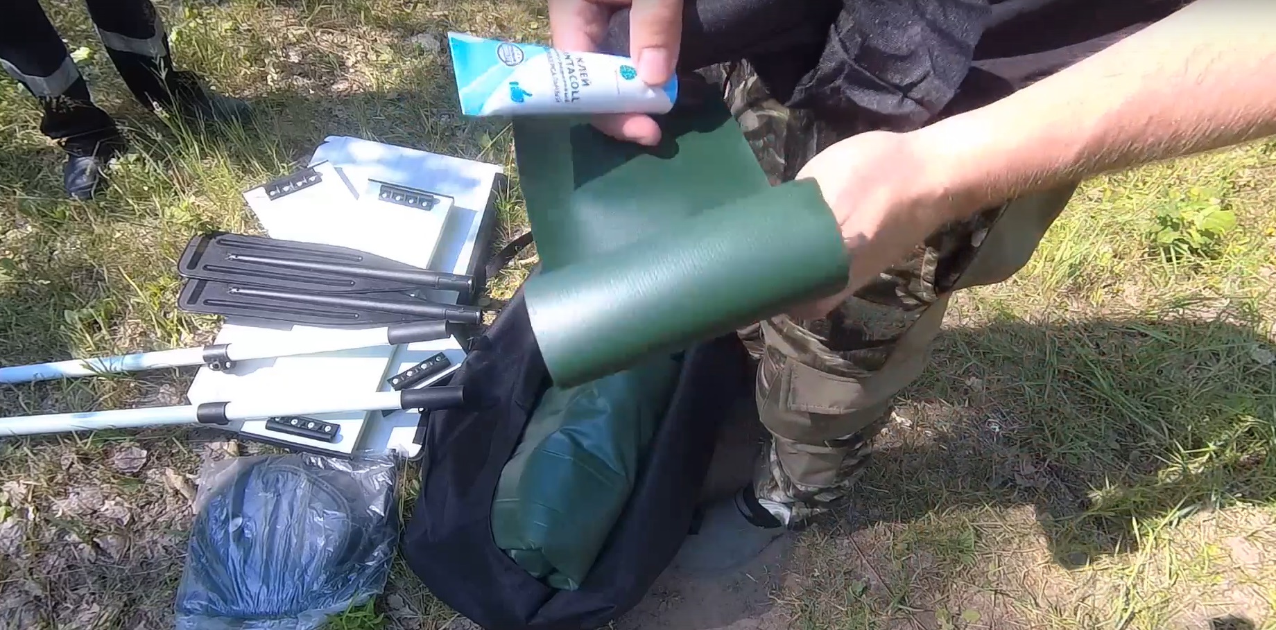 Зачастую рем.комплект для лодок пвх предствляет из себя просто резиновую заплатку и все. Но, как ремонтировать лодку одной заплаткой если клея нет с собой.