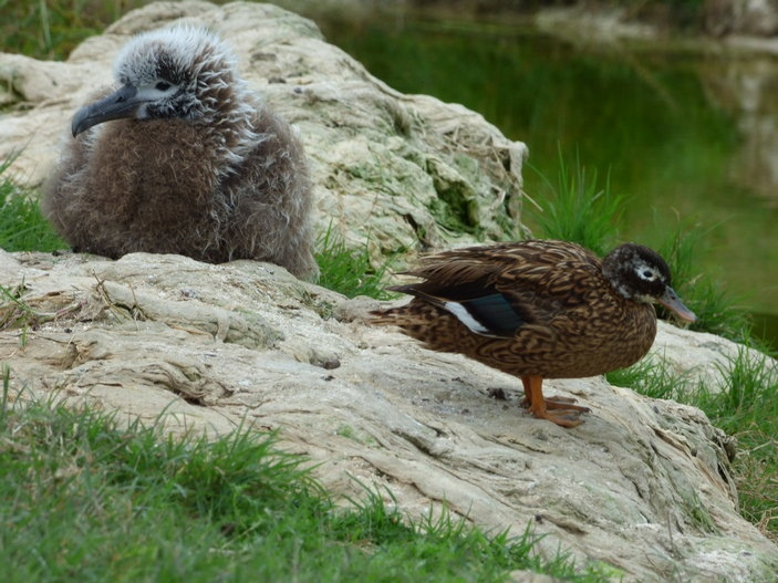 Чтобы вы понимали насколько мелкий наш герой: слева — птенец альбатроса, а справа — взрослый чирок.