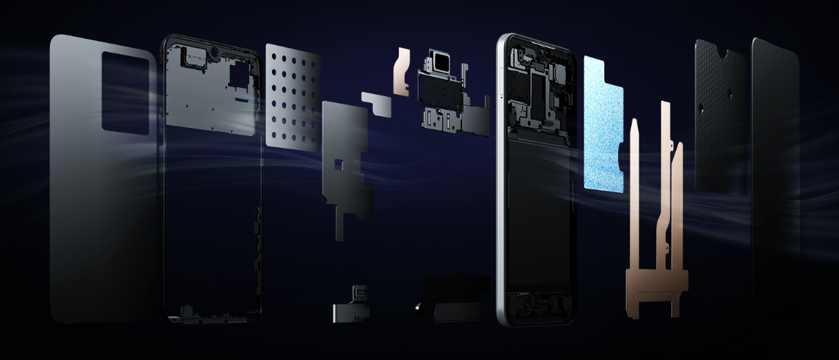 Охлаждение состоит из 10 слоев, что вкупе с оптимизированным процессором не нагреет смартфон выше 50 градусов.