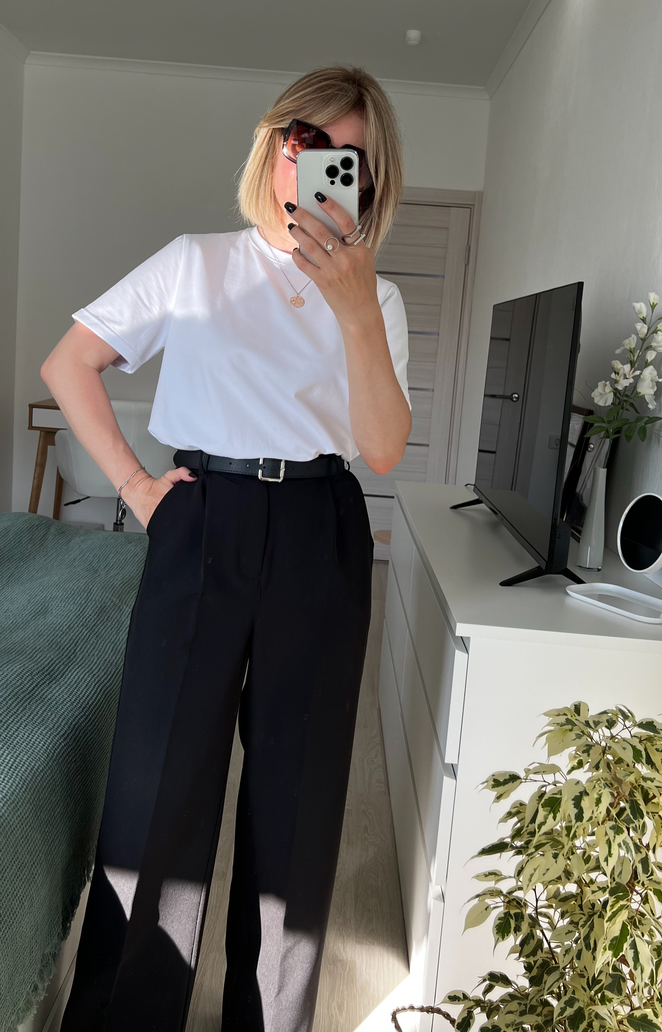 ✔Футболка. Я нашла её на WB и она отличная! У неё правильная горловина и качество топ: ткань кулирная гладь (разновидность трикотажной ткани, отличающаяся своей тонкостью и гладкостью).