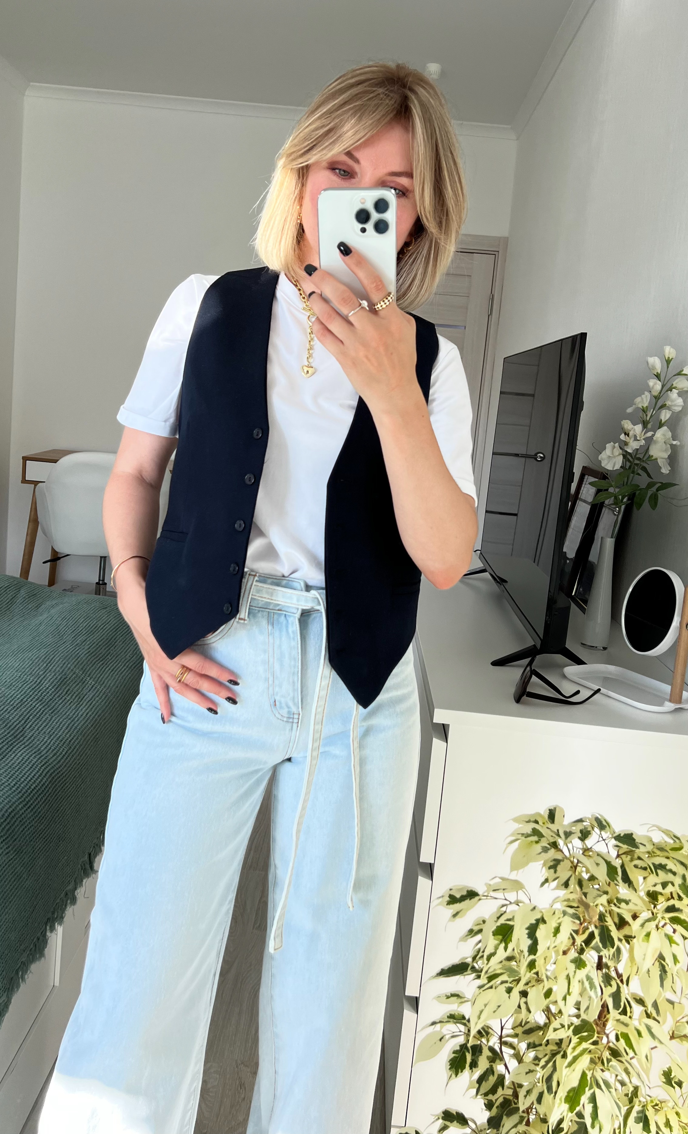 Костюмный жилет вещь очень стильная. Редко увидишь на ком-то его на улицах. Мне очень нравится носить его с простыми вещами — получается образ с изюминкой. Кстати, можно надевать его на голое тело, получится еще эффектнее.