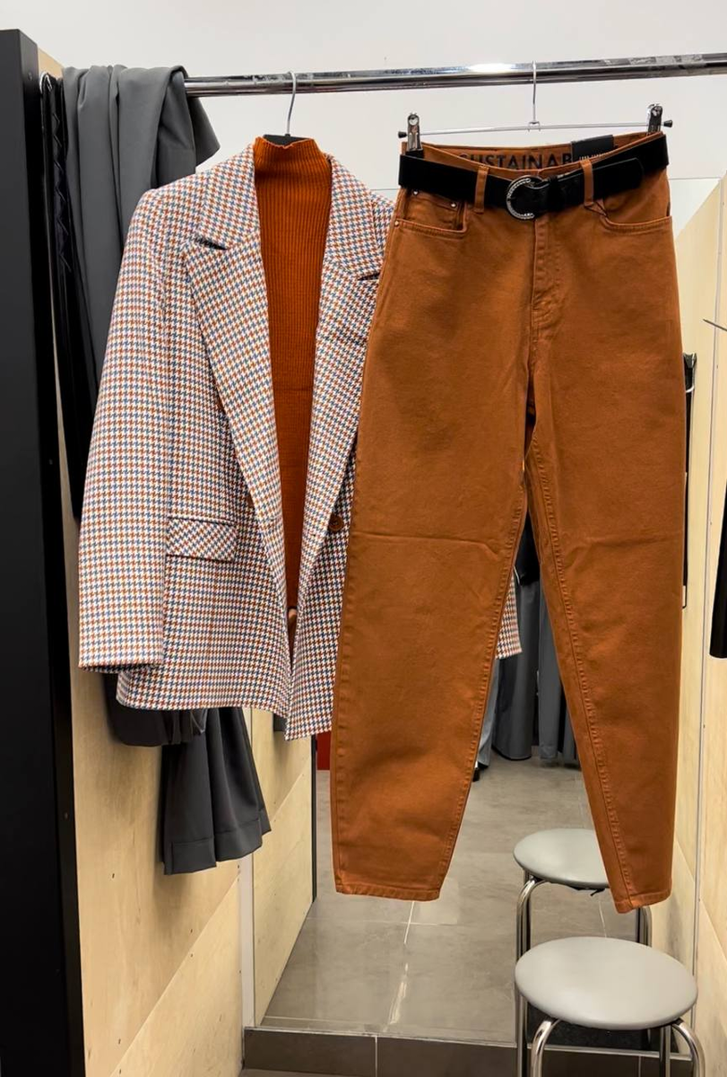 А ещё нашла там очень классные брюки. Посмотрите, как здорово они смотрятся с жакетом и водолазкой в этом же цвете. Стильный образ в осенних красках.