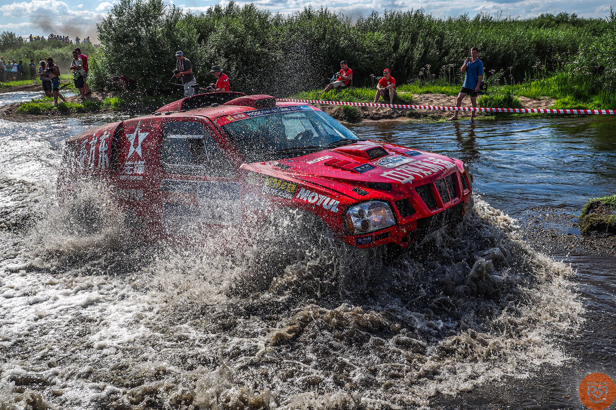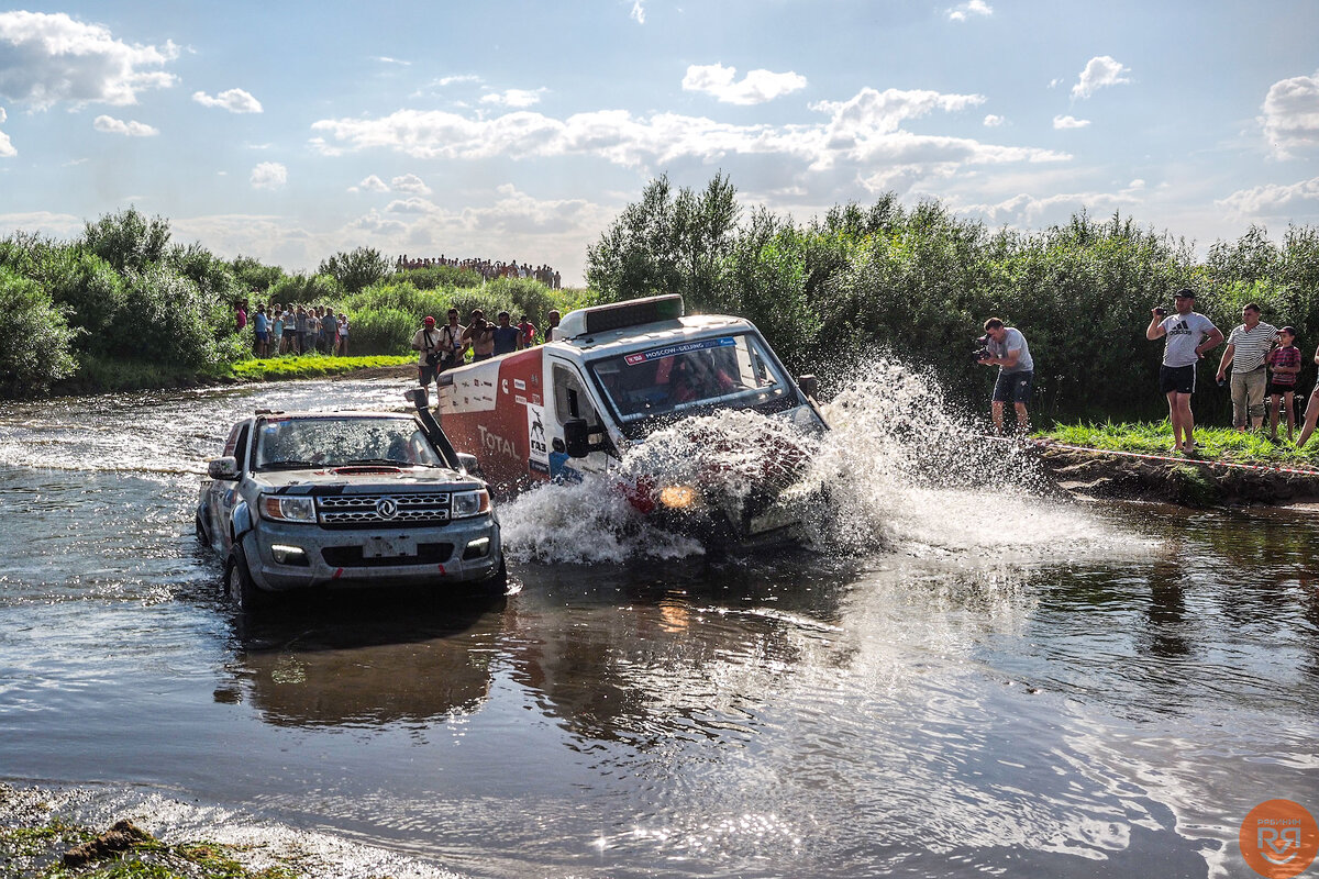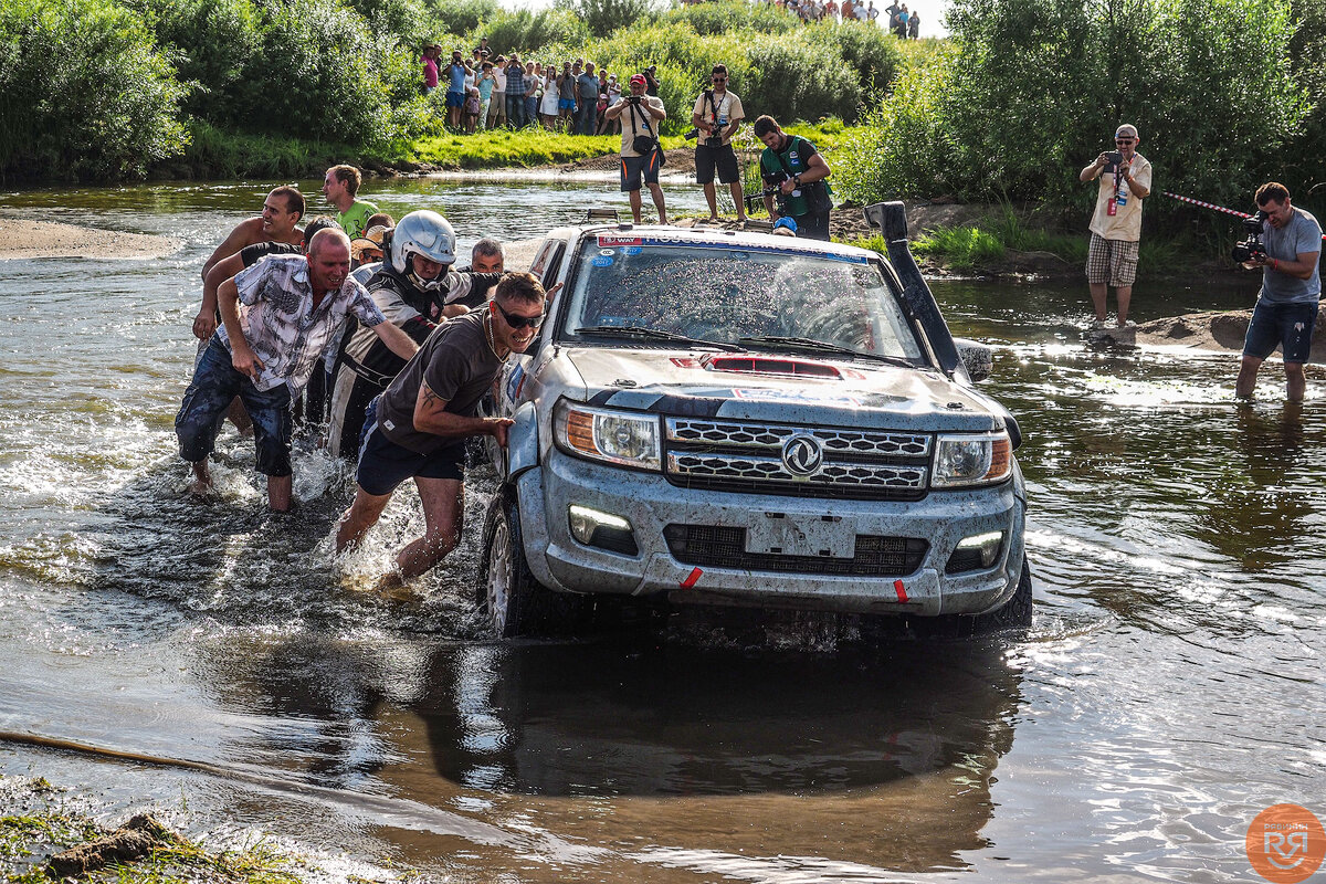Не успел уехать один экипаж, в ту же лужу сел второй экипаж из Китая, и тоже на заднеприводном пикапе. Удивительно, но факт! =) В Этот момент его красиво обошла Газель Некст команды ГАЗ Рейд Спорт.