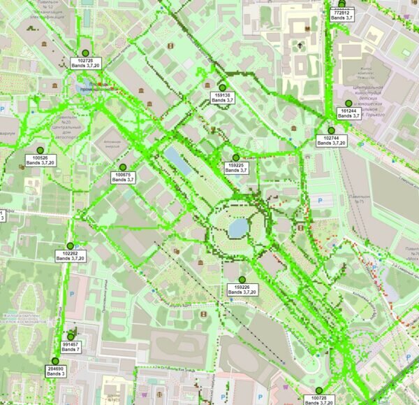 С чисто технической точки зрения, организация мобильной сети на территории ВДНХ – одно сплошное удовольствие. Ровная поверхность, плотность застройки небольшая, много высоких точек, есть откуда подвести оптику. При наличии соответствующих разрешений это просто праздник какой-то. Так что стало любопытно – что со скоростями у других операторов?