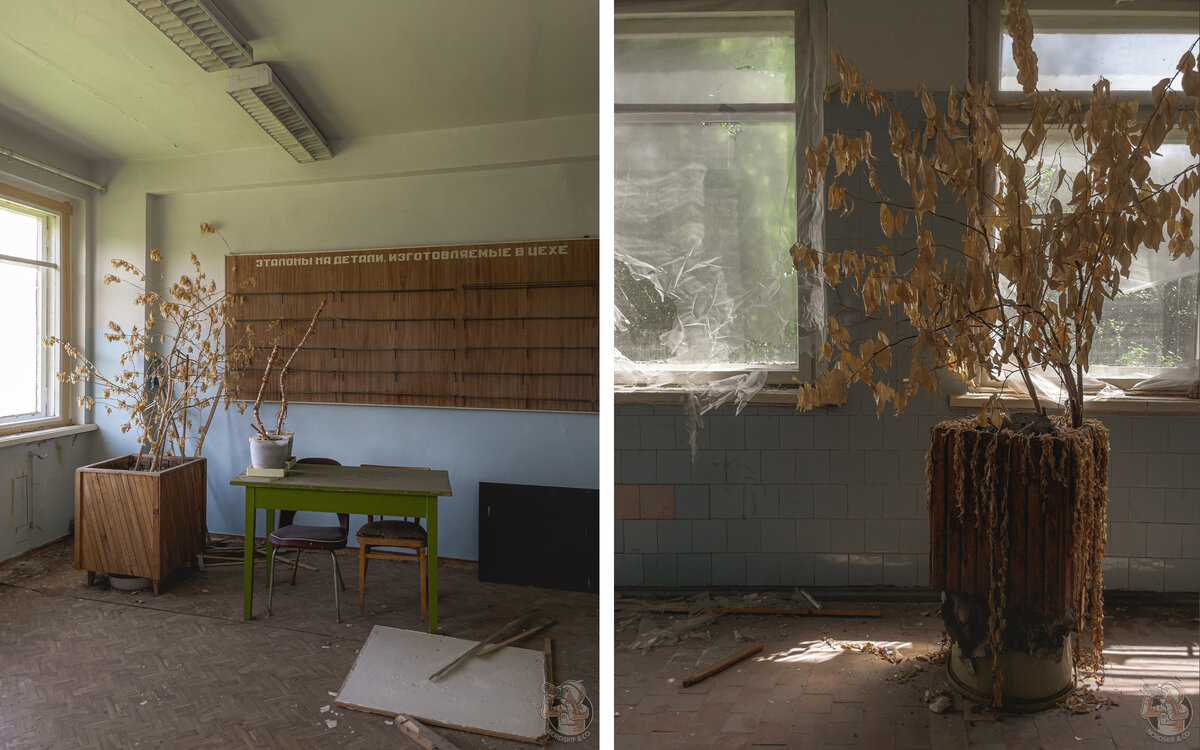 В какой-то момент я заметил, что третий участник группы, не разделяет ликования и заинтересован в месте едва ли больше, чем бывавший здесь десятки раз Туман. Правильно оценив немой вопрос, Макс выдал следующую фразу, которая заставила глубоко задуматься: «А что тут необычного? У нас на ***** механическом заводе один в один, только цветы в горошках пока живые и компьютеры у девчонок на этажах относительно свежие. А в остальном всё такое же, станки и мебель советские и даже лозунги местами висят. Чего удивляться?»