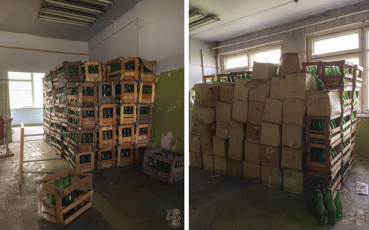 Наверное, перед закрытием на заводе что-то отмечали. Возможно, «Новый год». Иначе, чем объяснить необъятные залежи пустых бутылок из-под «Советского Шампанского»?