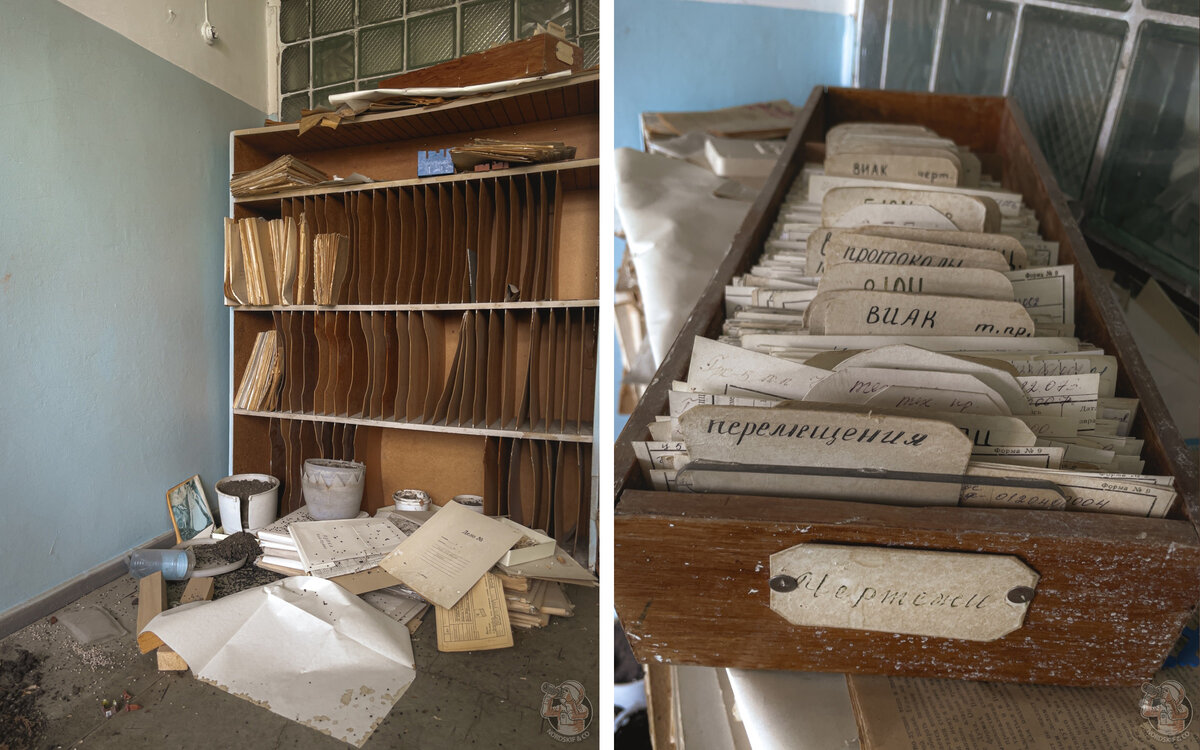 Архивы, всё ещё бумажные и ни следа компьютеров или оргтехники. Может, растащили? Но выглядит так, как будто бы их не было.