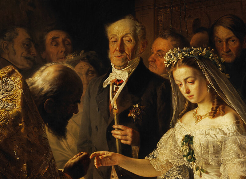 В 1861 году Святейший Синод выпустил указ, осуждающий браки с огромной разницей в возрасте. А через год живописец Василий Пукирев приступил к созданию полотна «Неравный брак». Эта картина, полная загадок и мистики, стала для художника роковой.