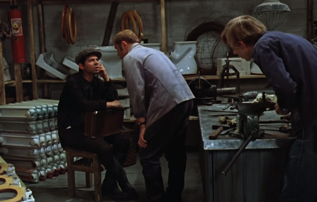 В этой сцене по сценарию Афоня занятно рассуждает, что как ему было бы хорошо стать балеруном, дабы выйти на пенсию в 35.