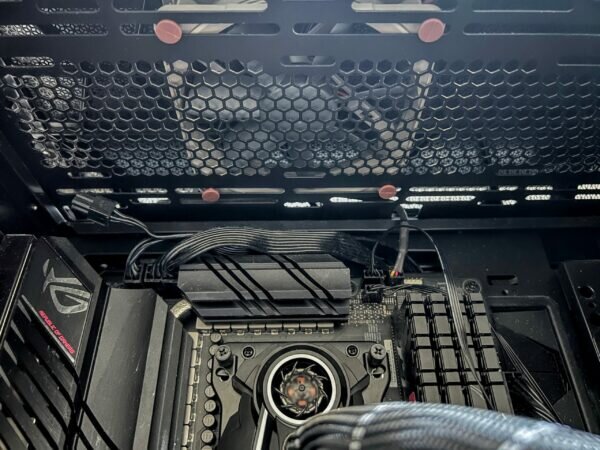 Разумеется, будучи дерзким экспериментатором и вообще смелым парнем, я прикрутил Arctic Liquid Freezer II 360 ко дну корпуса. В него встроено два огромных кулера, гонящих воздух наверх, и я предположил, что это как-то купирует неправильное расположение радиатора.