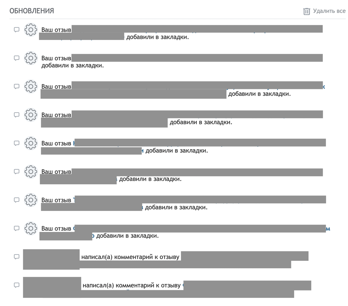 Вы думаете, что добавили в закладки — это заинтересовало? Нет. Это так тоже дают о себе знать. Проходят с лайками по старым отзывам и добавляют в закладки — ведь можно посмотреть, от кого были лайки, и сходить в ответку. Вроде и не наспамил, а вроде и пригласил к себе. Все эти закладки от одного человека — видно по тому, что он поставил лайки последним всем этим отзывам.