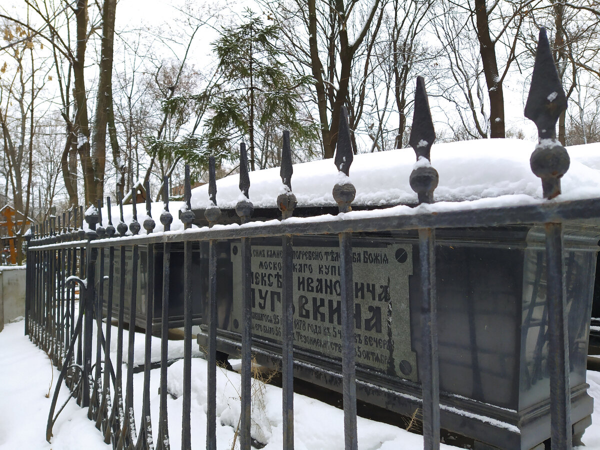 Вот еще одно купеческое захоронение — Пуговкиных. Купцы Алексей и Николай Ивановичи Пуговкины принадлежали к одному из известных старообрядческих родов, занимались продажей фуражек.