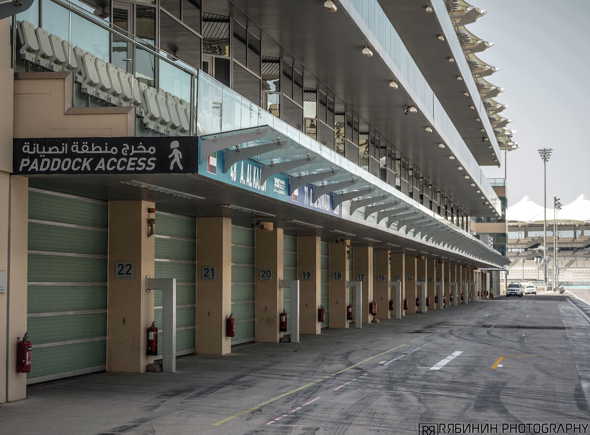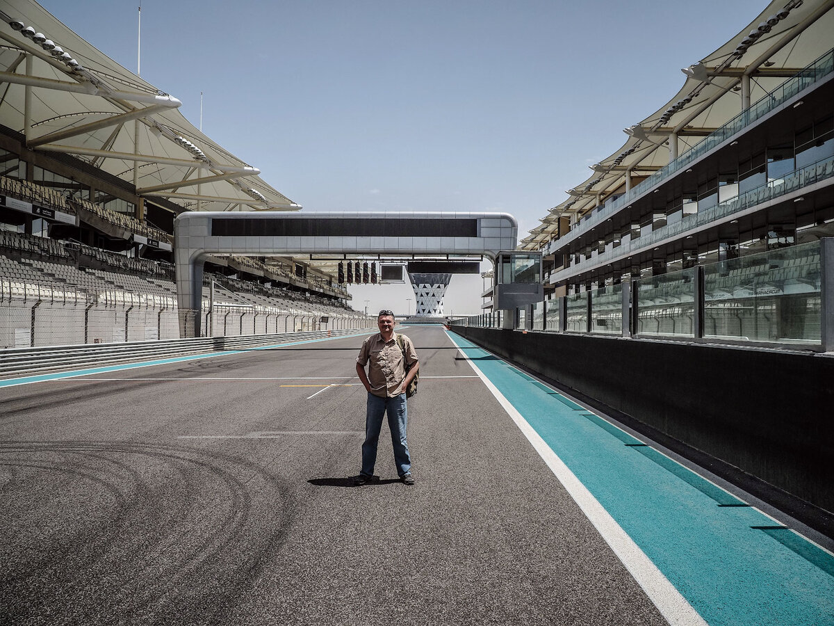 А выглядит он уныло и грустно, потому что в этот день на знаменитой трассе "Формулы-1" в Абу-Даби ничего не происходит, и у нас была возможность даже пройти в VIP ложи, попасть в которые во время гонок не просто сложно, а нереально. Обычным смертным…