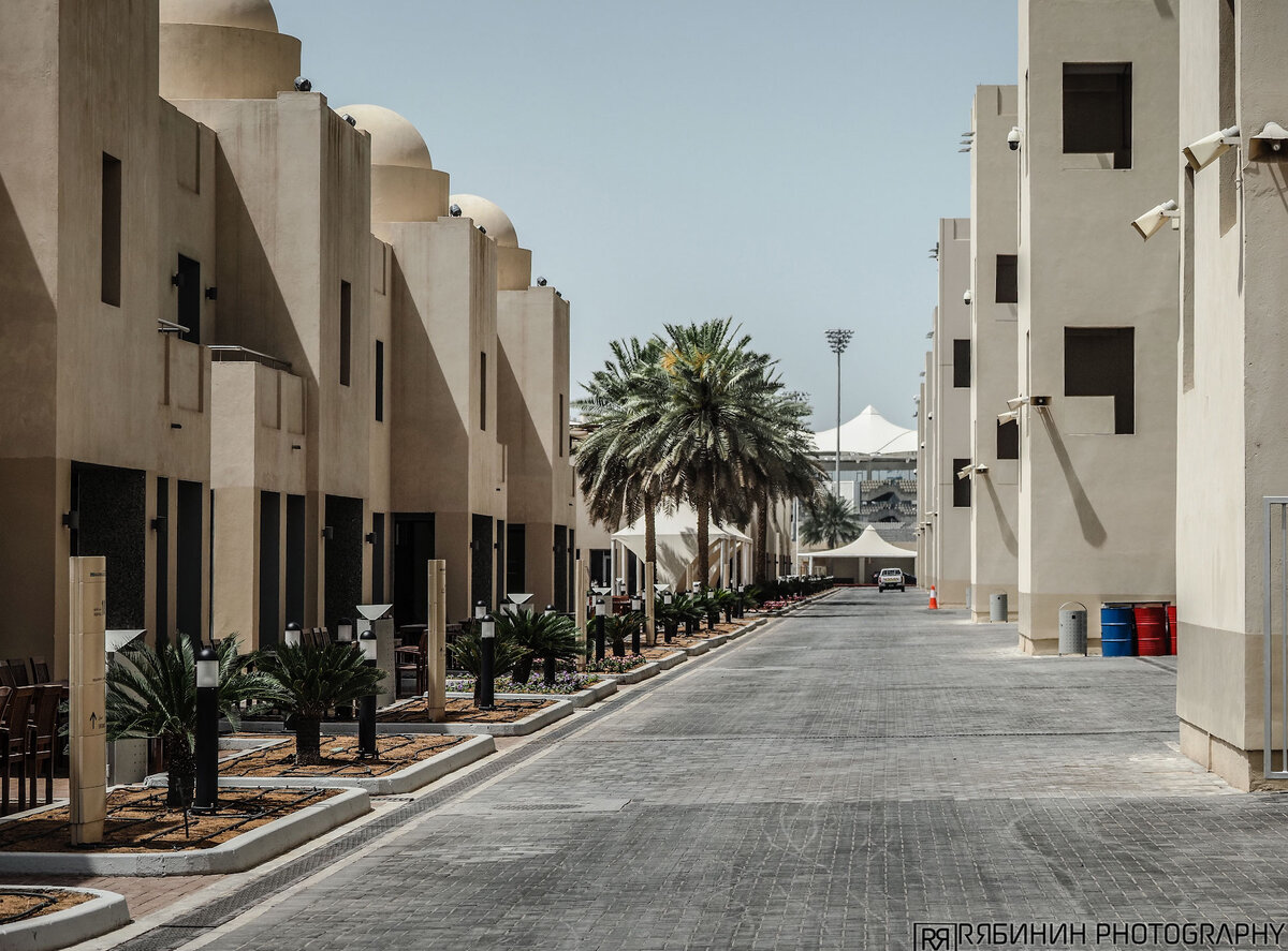 А это самая дорогая улочка трассы… Чтобы было понятно, справа — это основные корпуса, в которых находятся паддоки, vip-трибуны и т.п., а слева — это жилые домики с выходом на балкон к заливу. В этих домиках живут самые богатые люди (если не на своих яхтах). Я там побывал внутри, но что-то фото не могу найти.