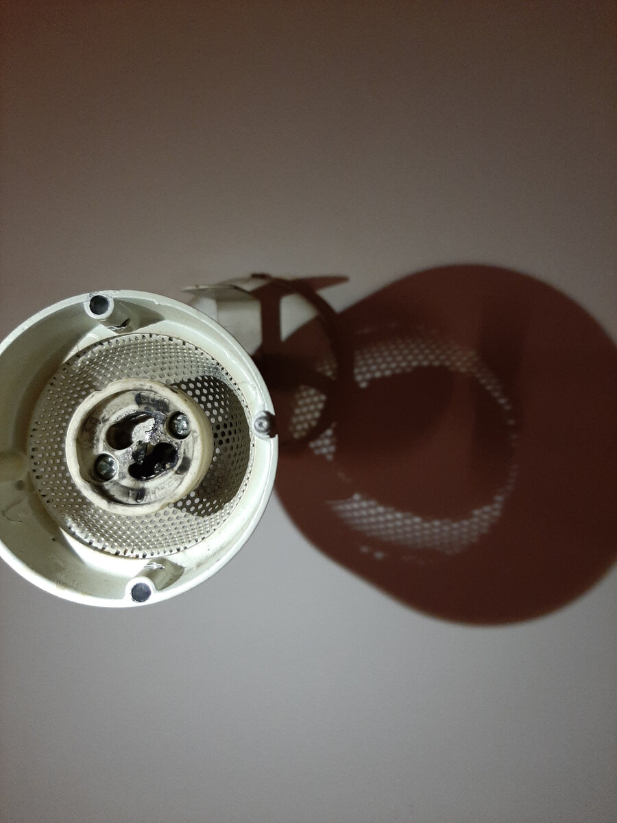 Если бы в моей ванной комнате был бы натяжной потолок, то пожар бы случился. Посмотрите на светильник ниже.