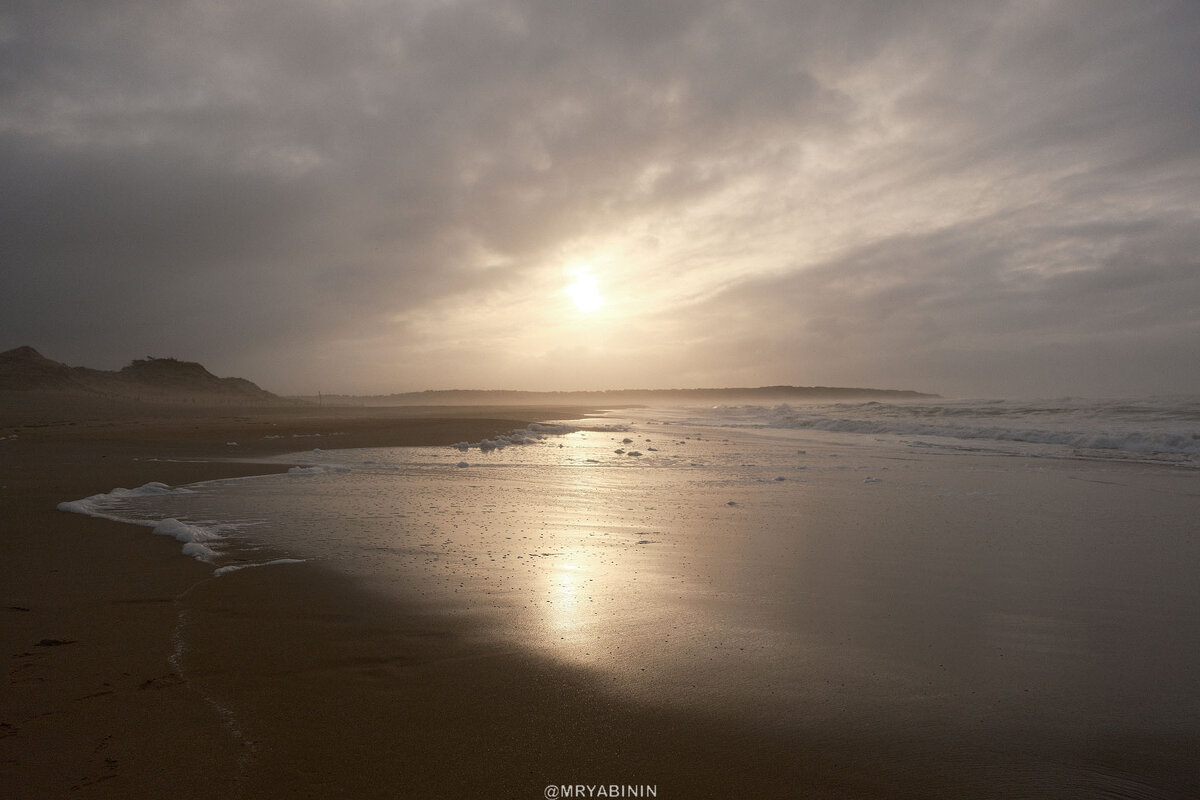 Впрочем, я не особо сторонник купания и загорания на берегу, а вот прогуляться по песочку или проехать на велике, или на багги, это другой разговор. Да и просто пофотографировать утреннее солнце, еще не успевшее разогнать туманную дымку — тоже отличное занятие.