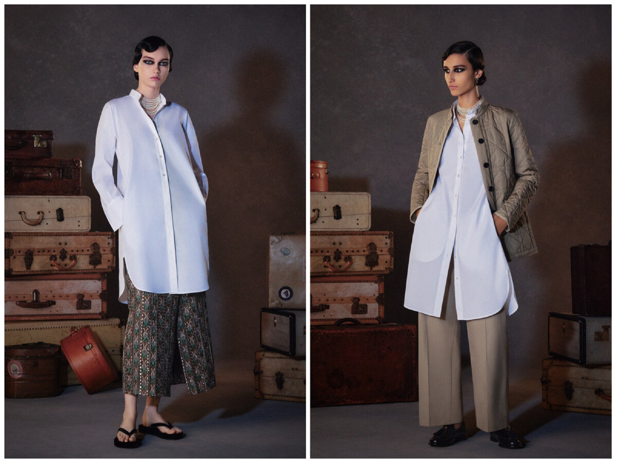 Эту фишку можно наблюдать и у модных инфлюенсеров, и на подиумах и у стилистов. Нет зациклинности на правильности пропорций тела, а точнее — верх значительно удлиняется. Так, носят незаправленные рубашки, футболки, удлиненные свитеры с юбкой миди, например.
