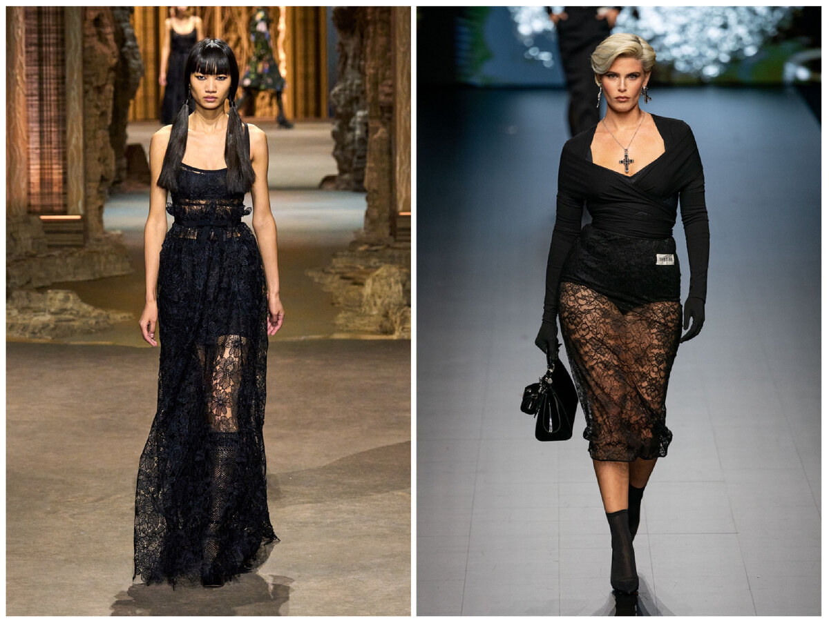 Этот тренд смотрится красиво, а порой и интригующе. Здесь не обязательно ставка на сексуальность, в ряде случаев это скорее романтизм, а иногда и дерзкий гранж или готику.