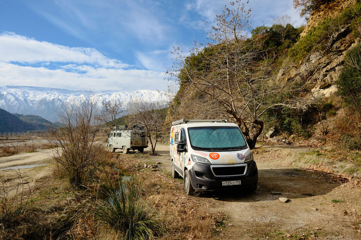 Вводные данные такие: автомобиль стоит не в самом лучшем месте для кемпера — солнце светит не слишком долго и рано уходит за горку сзади, тогда как кемперы на главной поляне получают еще около 1.5 часов солнечного света. Но мне тут больше нравится стоять, поэтому ОК. Само же солнце в этом месте Албании выходит из-за горы примерно в 9 утра и большую часть времени светит на панель под углом 35-40 градусов.