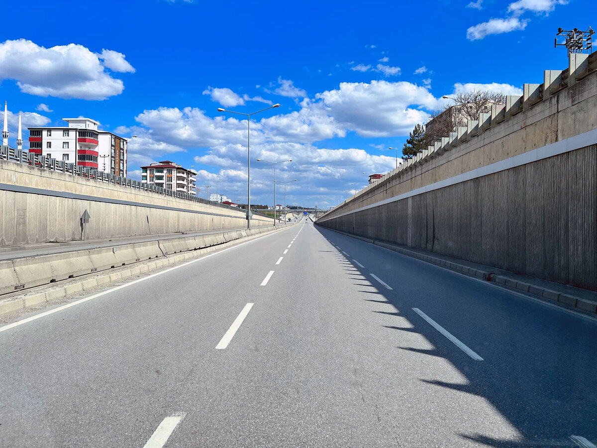 Вот, например, маленький городок (что-то типа Одинцово по размеру, а по значимости примерно как любимый всеми "мухосранск", потому что находится черт знает где. Так вот, мало того, что город очень сильно обновлен (очень много построено новых кварталов в период 20-22 годов), так еще через него идет сквозная дорога с фирменным турецким ограничением 82 км/ч, не пересекаемая пешеходными переходами и прочей тормозящей ересью, для которой сделан дублер.
