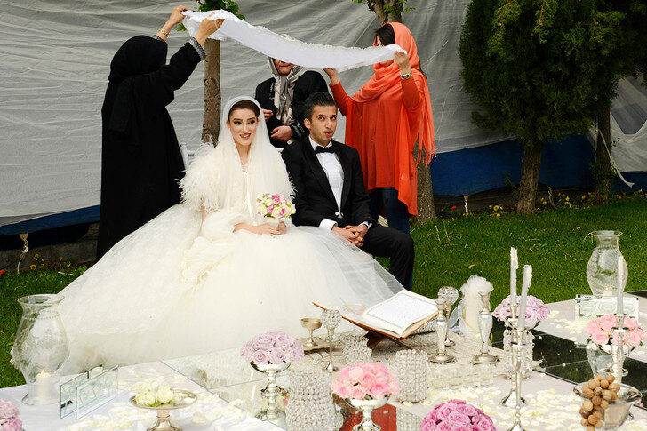 В иранской свадебной церемонии есть такой обычай: тёще, чтобы она не говорила ничего плохого и не влияла на семью своего сына прямо во время свадьбы зашивают рот цветными нитками.