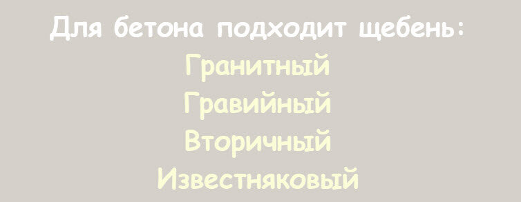Щебень добавляют не только для прочности, но и для того, чтобы снизить стоимость. Камень маркируют по массе и плотности (какие нагрузки он выдерживает):