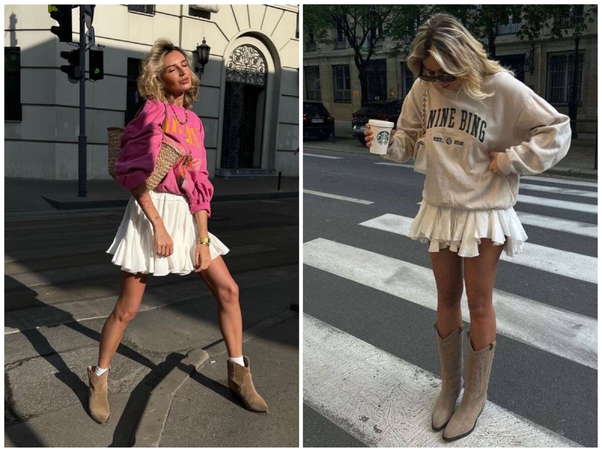 Лично мне в городской среде комфортен первый вариант, на спорте и дома я могу носить леггинсы/велосипедки и короткий топ.