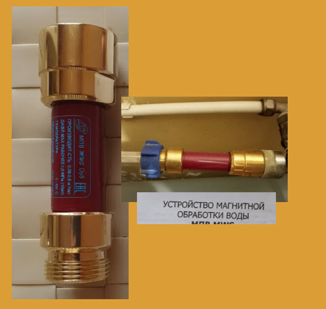 Небольшой прибор (вес около 300 г), по сведениям производителя, защищает технику, смягчает воду. Только не для питья! Для технических целей.
