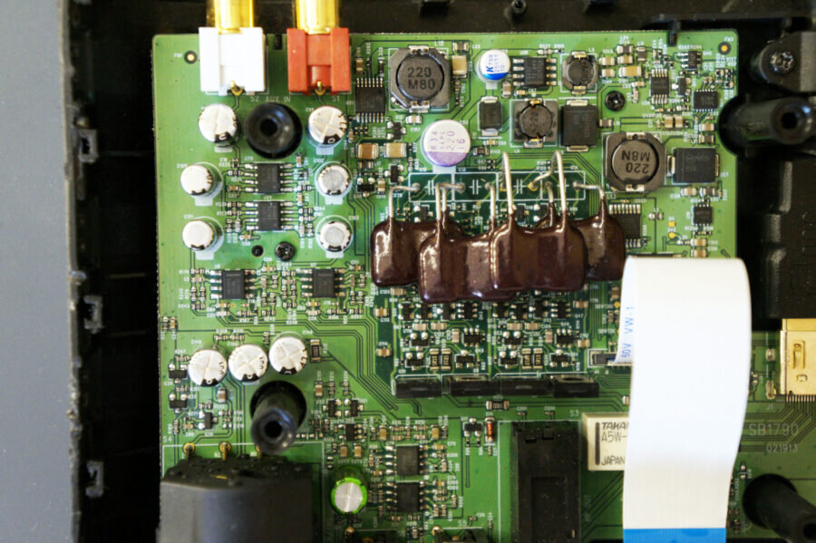 - Конденсаторы: DAC (ES9038Q2M) — Toshin ELNA Silmic II; Питание — Panasonic Polymer, Kemet Polymer, Nichicon.