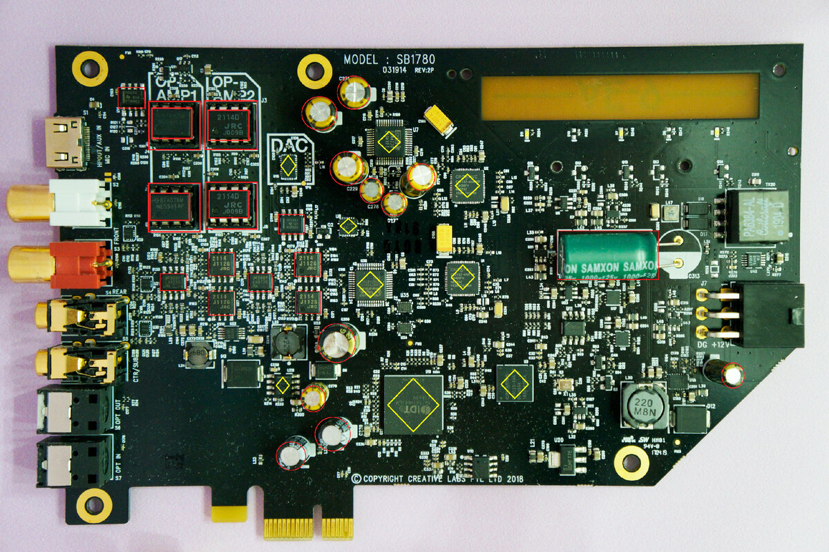 Я уточню что многократно упоминающийся ESS Sabre 32 ES9038Q2M – это основной двухканальный ЦАП карты, отвечающий за стереовыход и выход на наушники. ESS ES9006 отвечает за звук 5.1/7.1 в колонках, поэтому для меня пока является второстепенным. Но кто знает, какие задачи встанут перед системой в будущем.