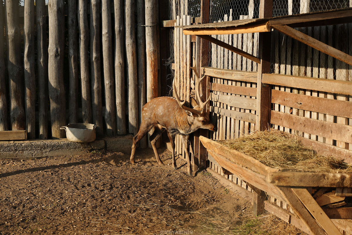 Чуть поодаль представитель дикой фауны — пятнистый олень, если мои знания не ошибочны. Рога есть, пятна есть, не корова, не козел, значит олень! 😂