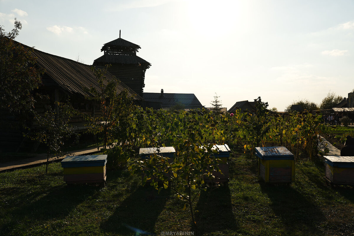 Если пойти направо от главных ворот, то попадаешь в огород и к декорациям зданий, использованных при съемках фильмов. К слову сказать, декорации выполнены довольно неплохо и при умелом обращении с камерой тут можно воссоздать атмосферу Древней Руси, и не только.