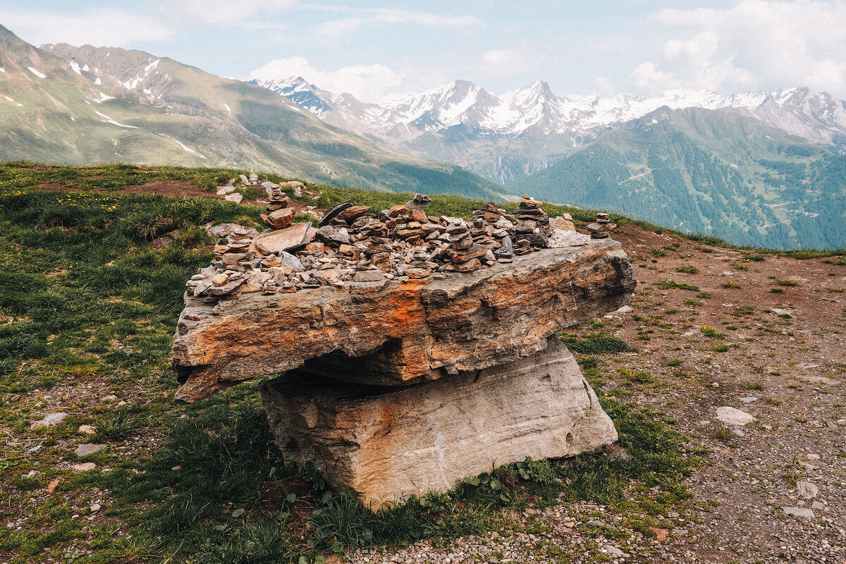 Не обошлось и без гигантских пирамидок на вершине перевала. Любимое занятие туристов.