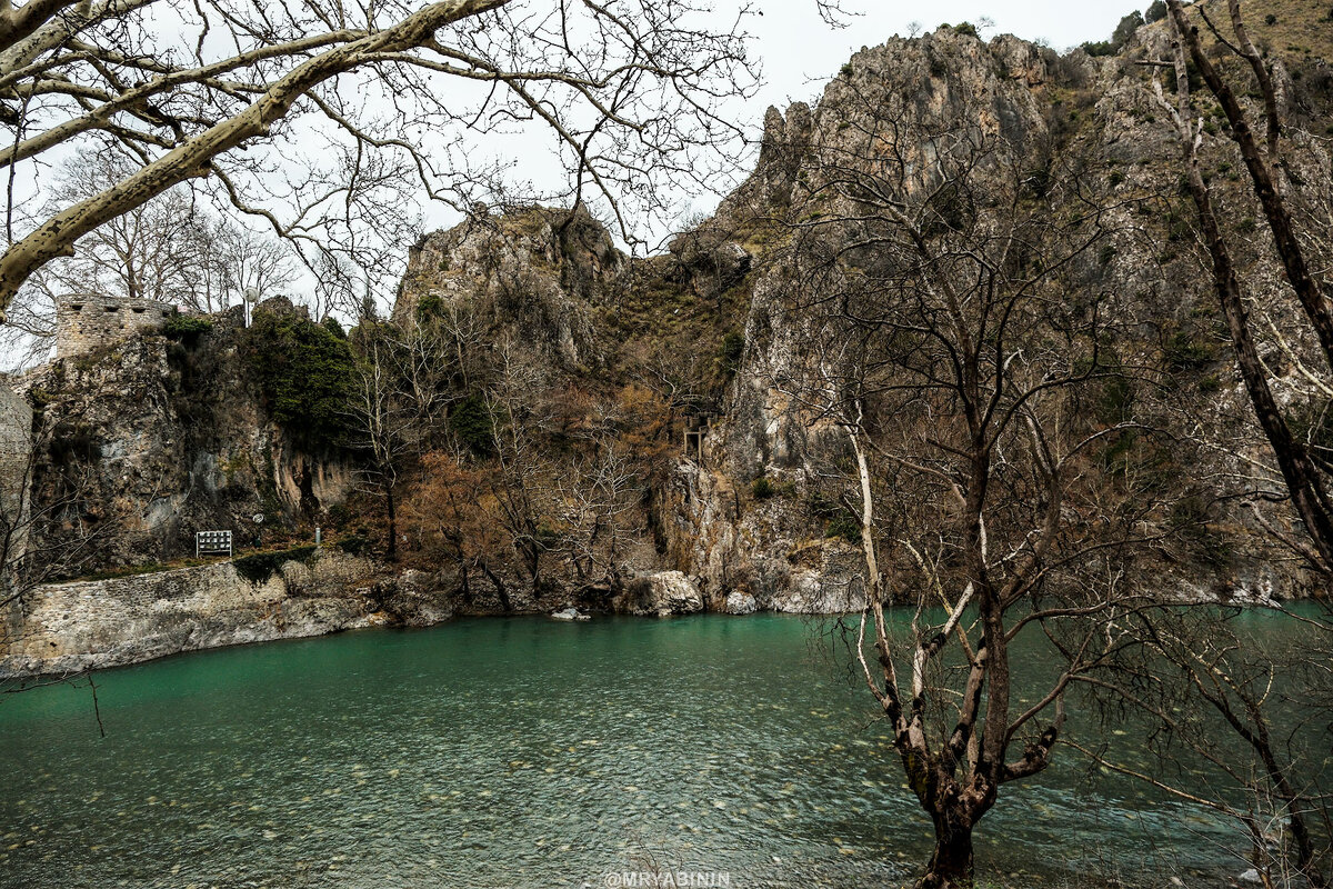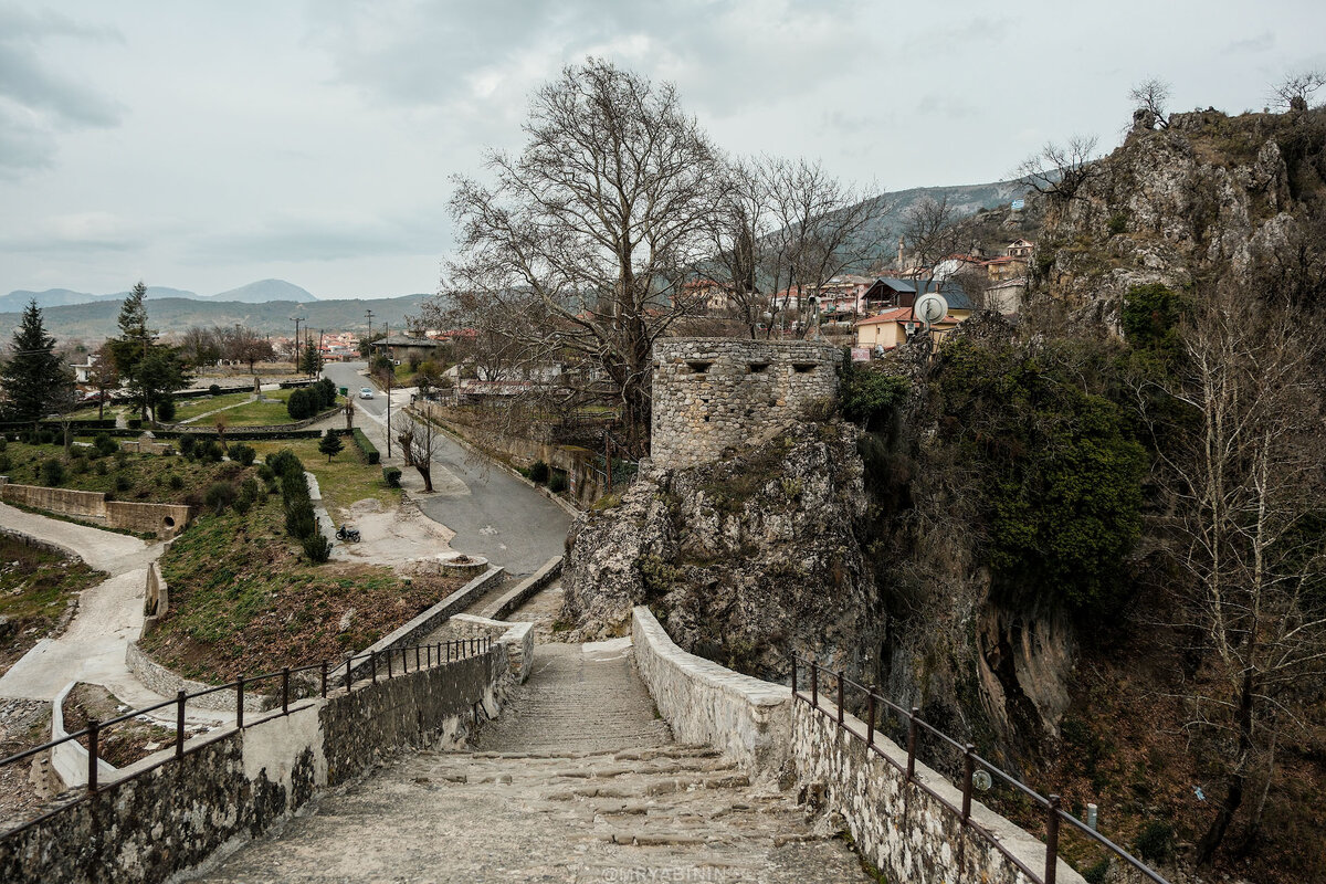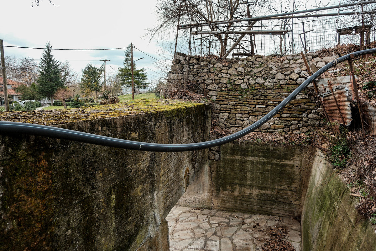 Дальше канал подходит к населенному пункту и старому османскому мосту через реку, охраняемому укрепленным стрелковым ДОТом. Если присмотреться, то можно увидеть еще одно ответвление. Если его открыть, то будет настоящий водопад. Здесь же видно, насколько канал поднялся над уровнем реки.