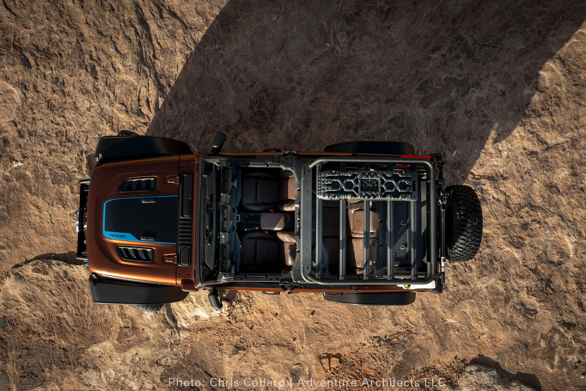 Перечислять все аксессуары, которыми упаковали концепт BirdCage не стоит, потому что будет слишком впечатляющий список, включающий в себя даже модифицированные крылья и расширители арок, кстати, имеющие съемные части с фонарями, снятие которых позволит не рисковать их целостностью на бездорожье и добавить простора для геометрии на каменном триале, что весьма популярно и практикуется в США.