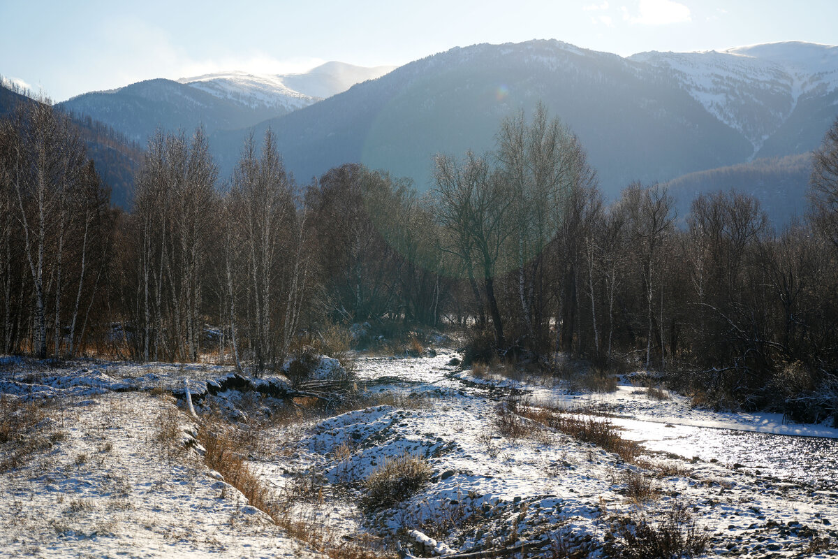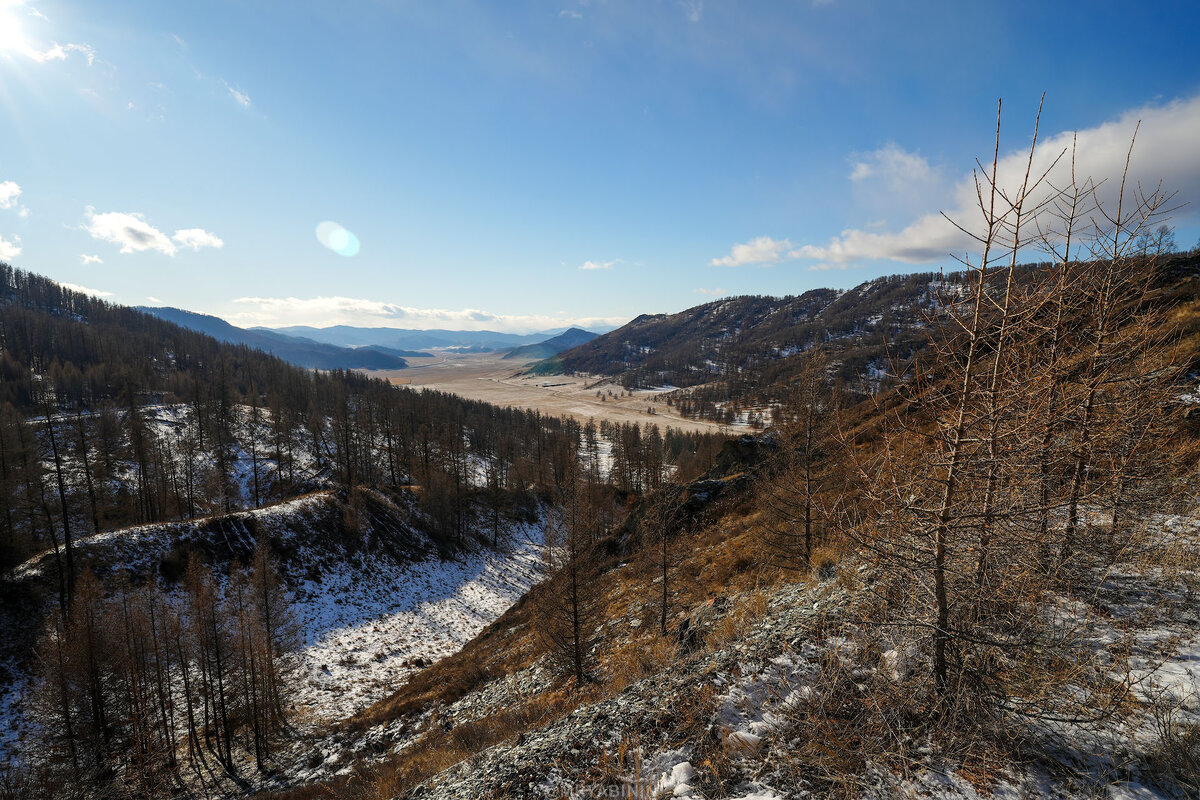 Спустившись в долину я оказался перед фактом того, что тут от снега не осталось и следа. Если по дороге к перевалу он еще как-то присутствовал, то долина была больше похожа на осенний Алтай. Впрочем, на дворе конец ноября, а значит это и есть осенний Алтай. Только без снега.