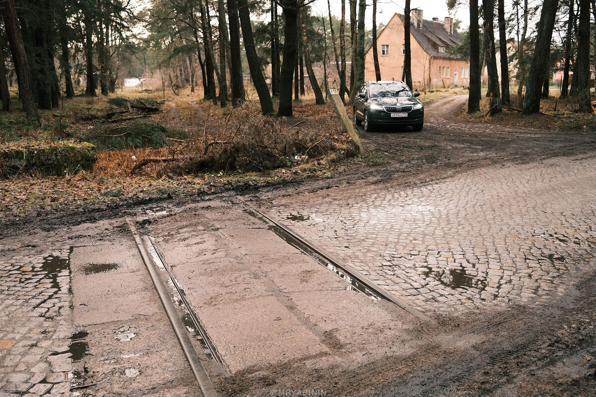 Ну и конечно брусчатка. В Калининградской области она местами выходит как каменные пласты наружу, из-под асфальта, словно не хочет тонуть в истории. Ездить по брусчатке то еще удовольствие, но мне кажется, что некоторые дороги надо специально такими сделать, чтобы люди ехали медленно для безопасности или имели возможность поглазеть по сторонам и не пропустить самые красивые виды российской Балтики.
