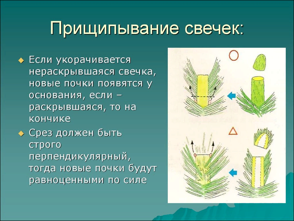Теперь о том, на какую длину желательно прищипывать побеги хвойных растений.