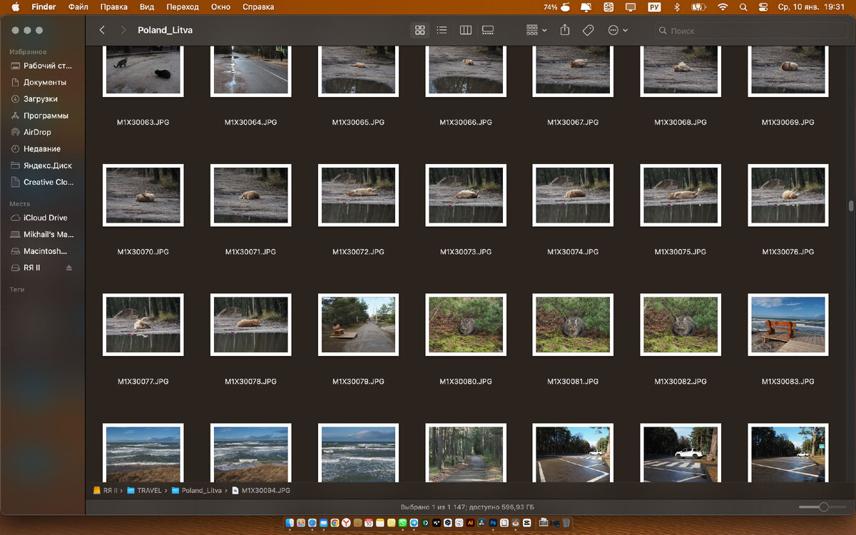 Итак, для начала я все же немного позащищаюсь от пересмотревших ТВ и видящих во всем заговор. Вот та самая папка с фотографиями российской и литовской стороны Куршской косы. Меня там обвиняли в том, что это вообще разное время, что российские фотографии еще сто лет назад сняты, а Литва только вчера, ну и другие рассказы невменяемых комментаторов, с кем даже спорить сложно, ибо вижу ворота — не вижу причин в них не удариться. Разница лишь в том, что "на стыке" прошло два часа на пересечение границы.