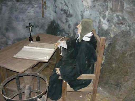 В одной комнате изображен допрос на дыбе, в другой , так называемая "Ослиная езда", в третьей допрос при помощи воды. Скорей всего вы даже никогда не слышали о таких страстях, но любопытство преобладает над пугливостью и туристы продолжают углубляться в коридоры. Само собой, герои этих мини-экспозиций сделаны из папье-маше, а кровь нарисованная. Однако, фигуры эти могут двигаться! Они поворачиваются, внимательно на вас смотрят и возвращаются к своей работе.