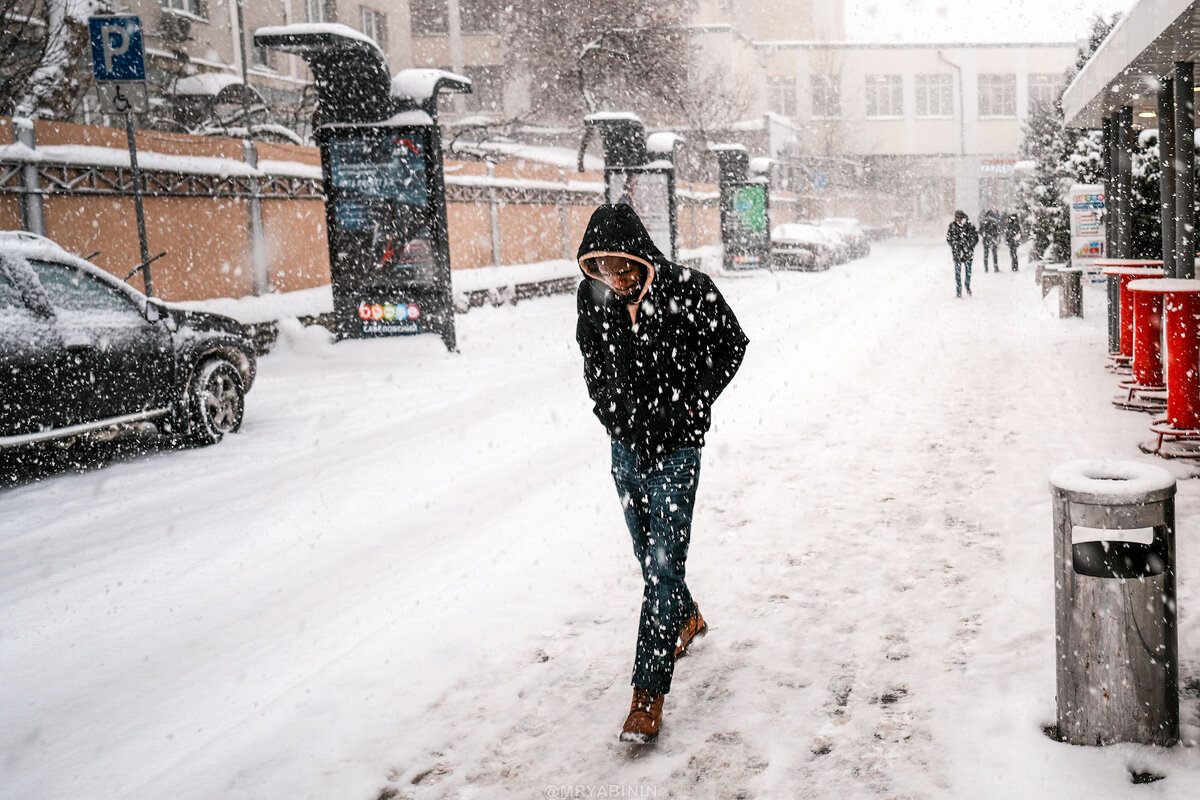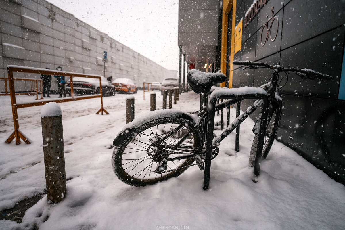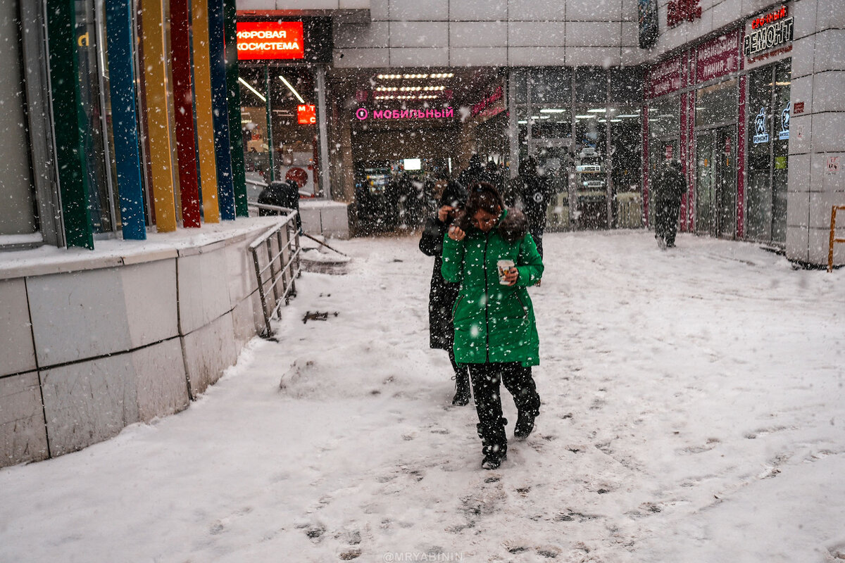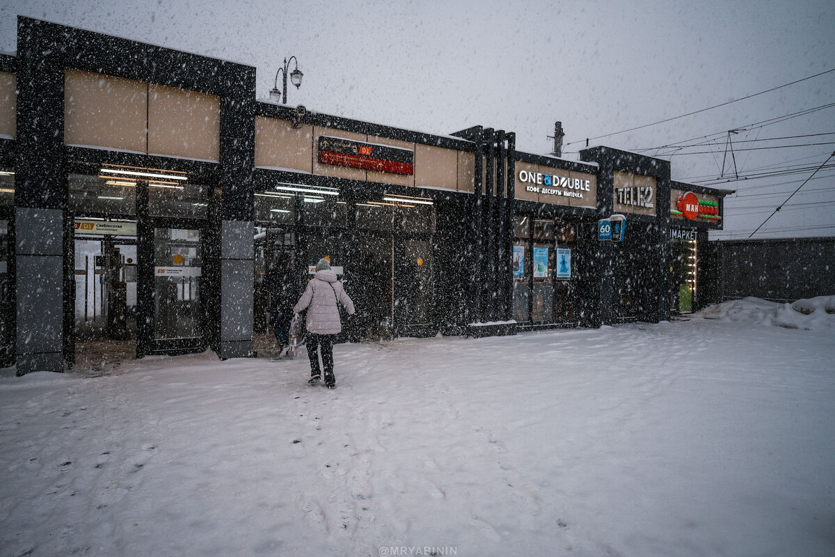 На обратном пути заскочил на Савеловский в фотомагазин. Оказывается, что на Савеловском тоже можно с D4 на D1 пересесть, только чуть замороченно. И тут на меня напал самый снегопад. Тот случай, когда вспоминаешь, есть ли у твоей камеры защита от непогоды, потому что фотоаппарат превратился в снежно-капельный комок. Но фотографы знают — чем хуже погода, тем лучше и интереснее атмосфера на фотографиях.