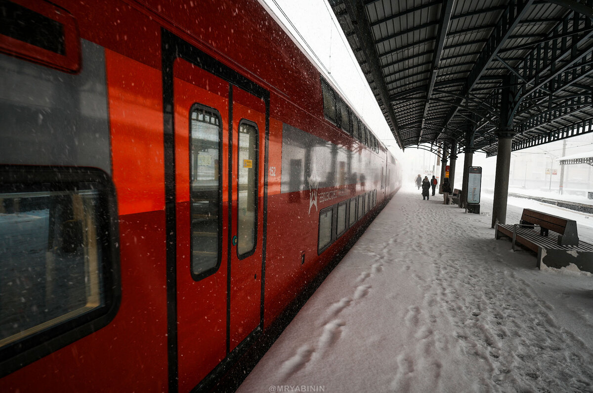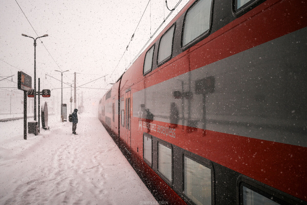 Но пока я с вами болтал — приехал двухэтажный Аэроэкспресс. Эх, на таком бы в детстве покататься, но в моем детстве еще Эр2 можно было встретить, которую я считаю самой красивой электричкой всех времен и народов. Был в старых электричках какой-то особенный дух, если только все двери и окна закрывались, работало отопление и освещение. 😂