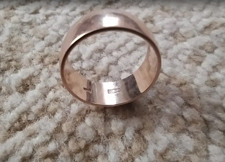 При переводе получается 583 проба. Такая проба ставилась на советских кольцах.