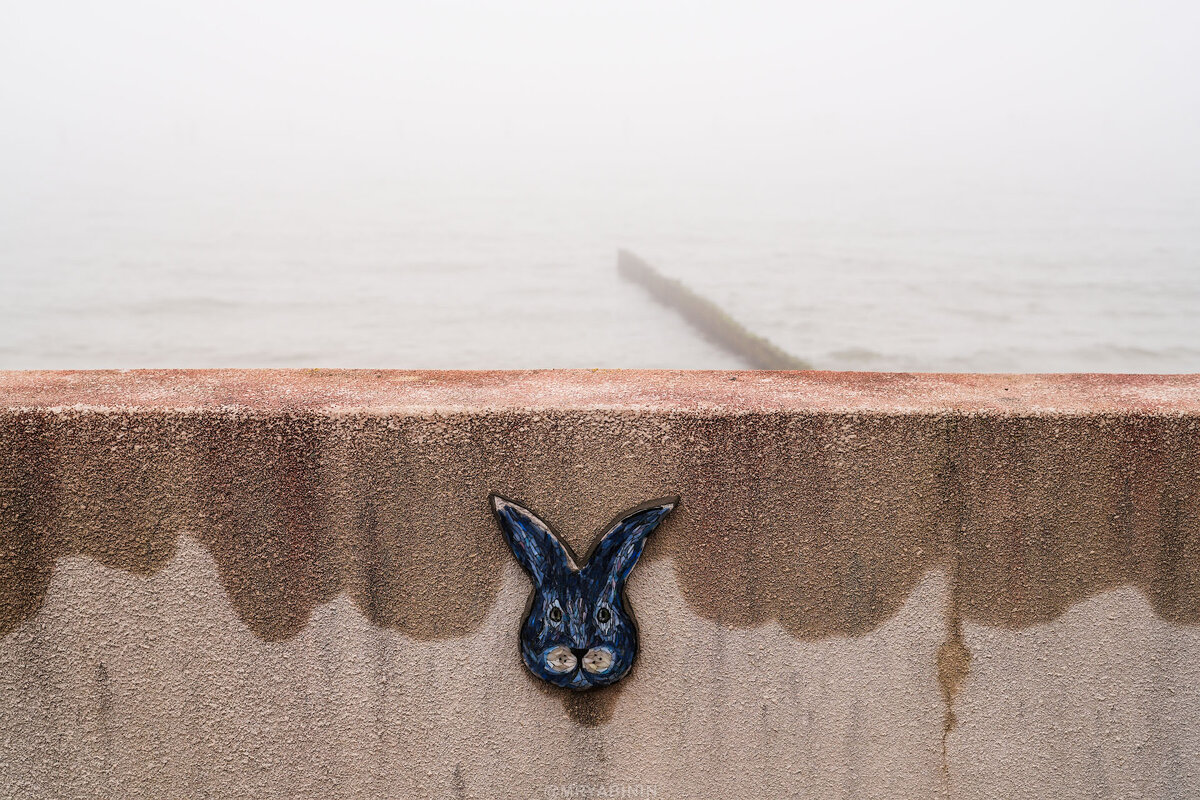 Внезапно нашел на променаде зайца! В этой части променада, уходящей в сторону Светлогорска-3, я был очень давно и не помню, чтобы тут был этот ушастый на парапете. Классный арт-и-факт.