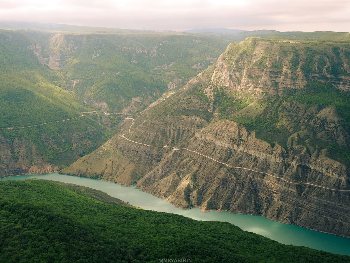 Отсюда открывается невероятный вид, которому может позавидовать узкое ущелье реки Сулак в районе Чиркейской ГЭС, куда приезжают основные толпы туристов.