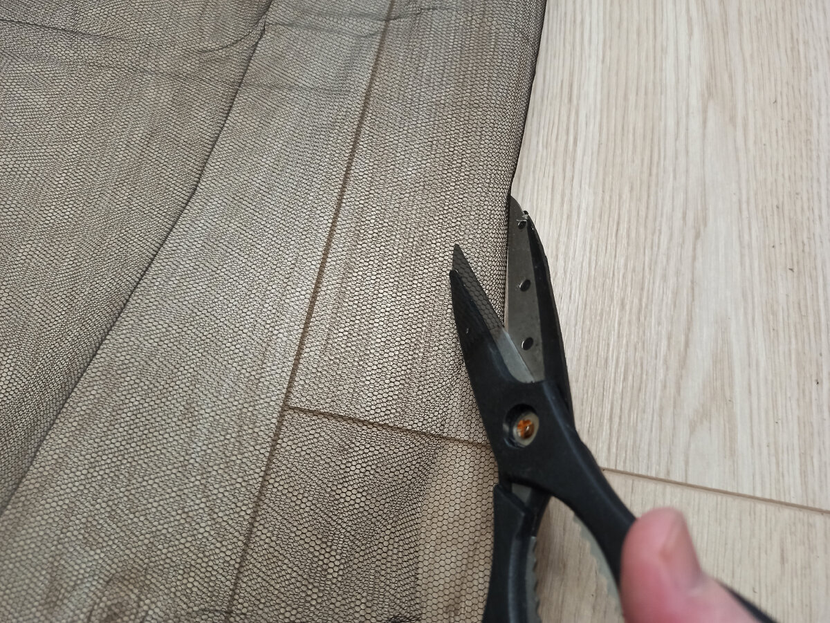 Сначала измерил окно и вырезал по размеру сетку. Про запас с каждой стороны оставил по 2-3 см.