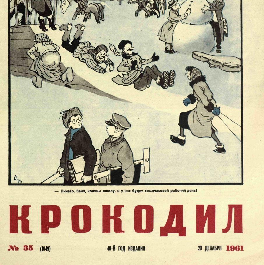 В каком-то из выпусков середины 70-х я находил карикатуру, где художник высмеивал "нынешнее поколение" учеников. А это те, кто учился в 70-е годы, указывая, что они недостаточно грамотны и усердны.