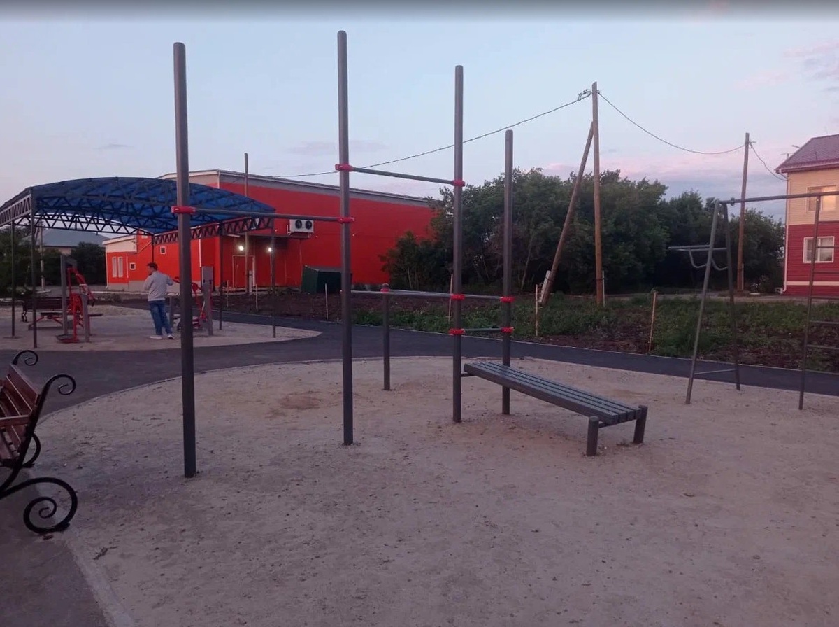 Ребенок, чтобы развлечь себя, отправился по окрестностям и обнаружил несколько спортивных площадок, на которых можно позаниматься спортом. Вот фотографии одной из них:
